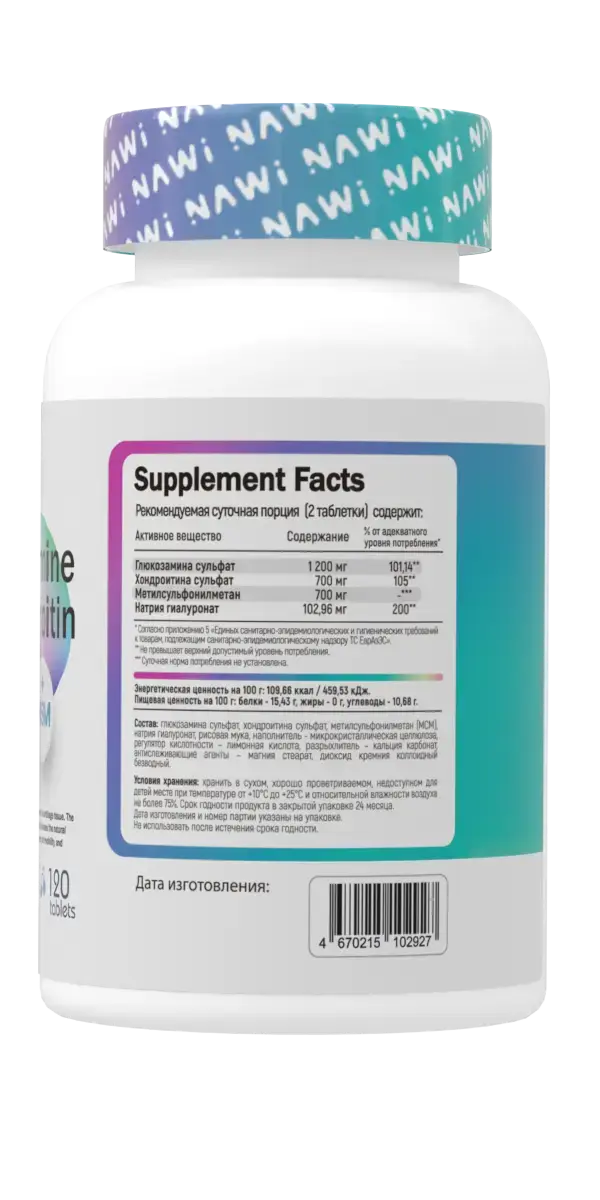 Хондропротектор Nawi Glucosamin & Chondroitin + MSM 120 таблеток