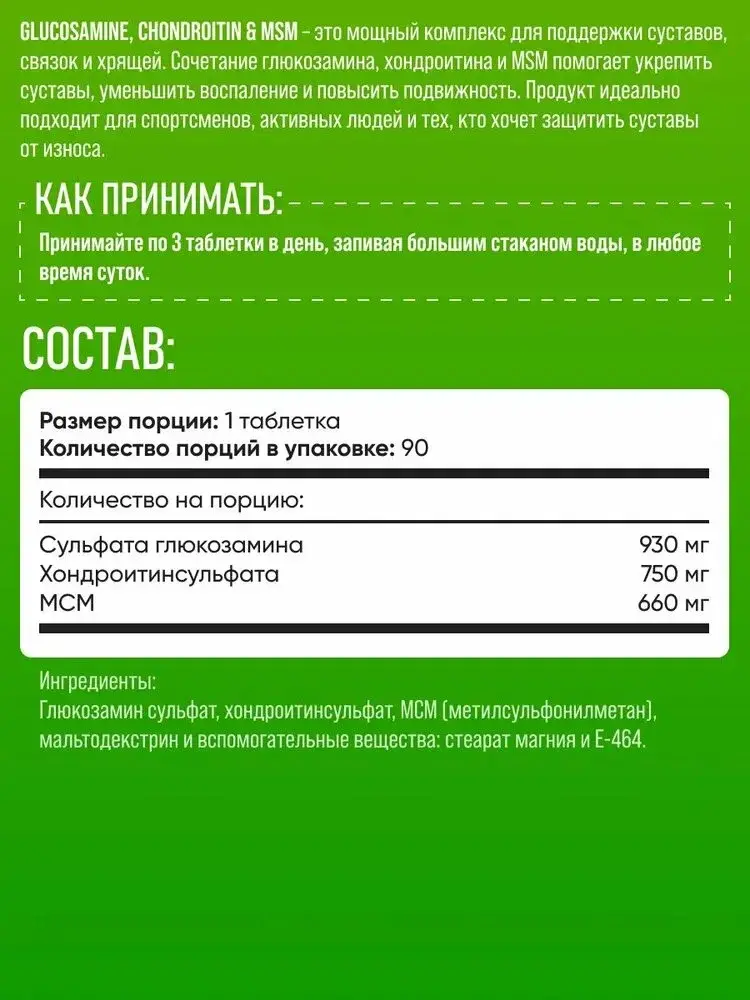 Хондропротектор Quamtrax Glucosamine Chondroitin & MSM 90 таблеток