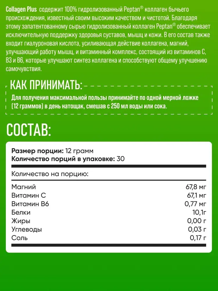 Коллаген Quamtrax Collagen plus peptan 350 г без вкуса