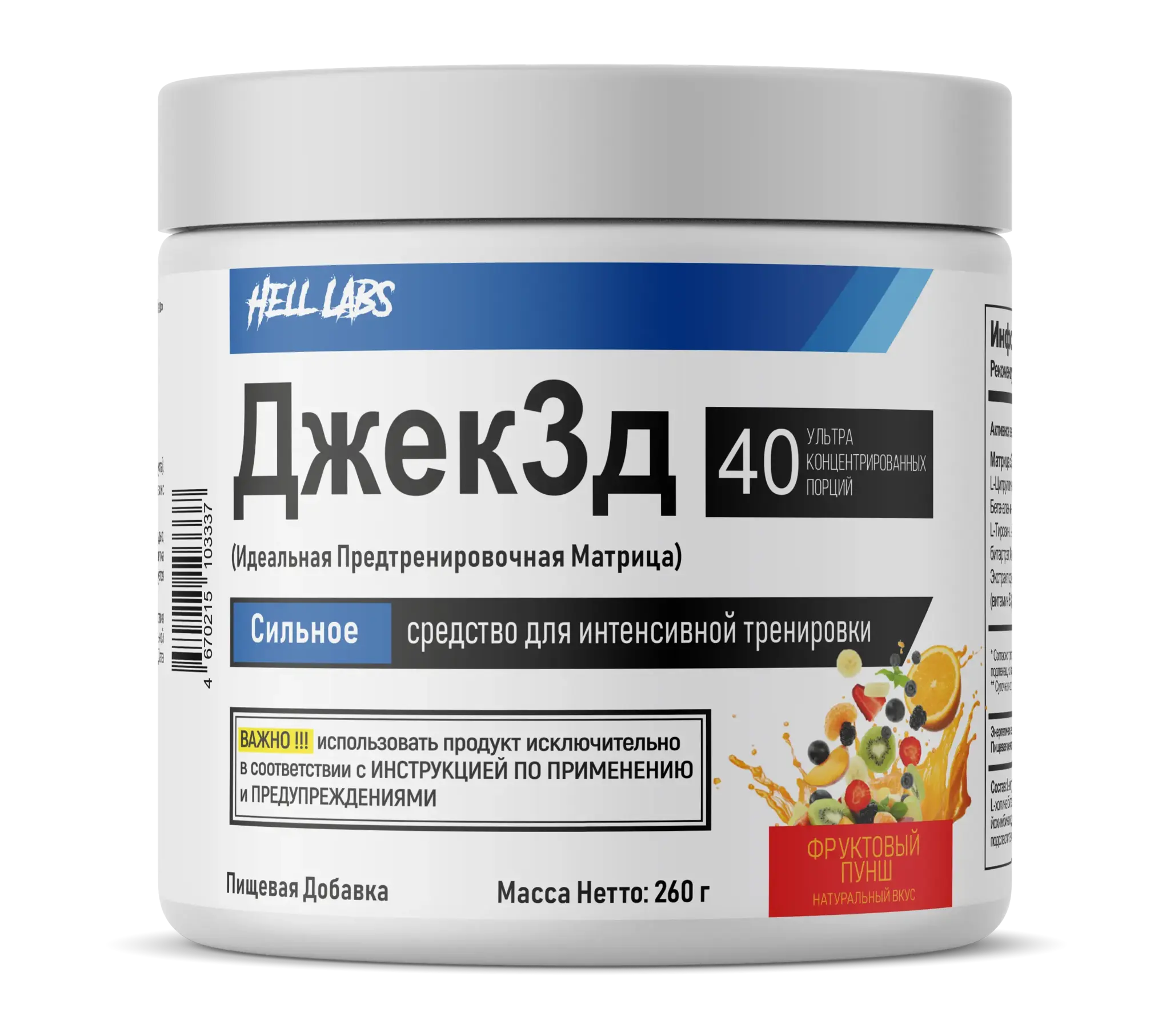Предтрен Hell Labs Джек3д 260 г фруктовый пунш