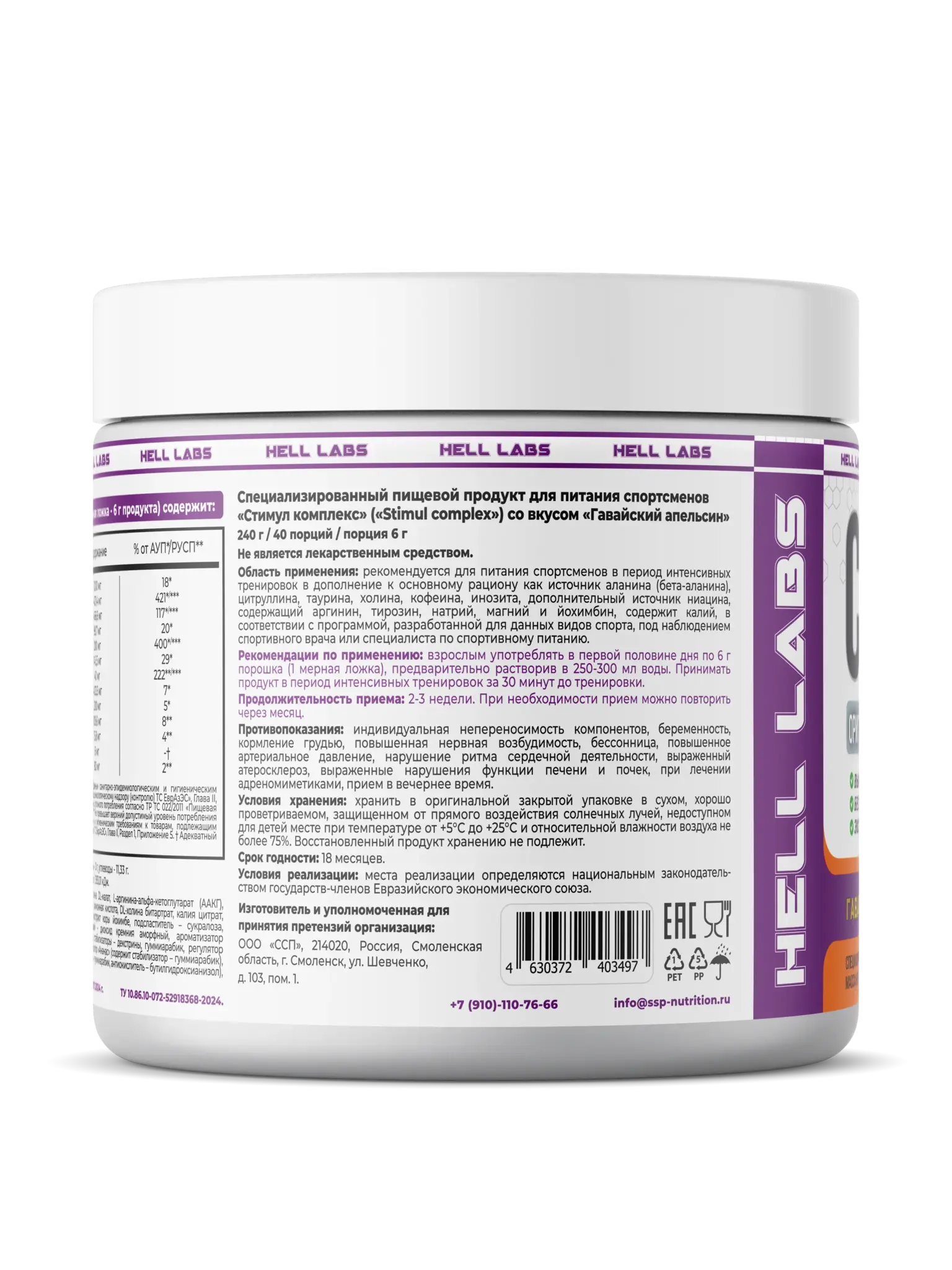 Предтрен Hell Labs Стимул 8 240 г апельсин