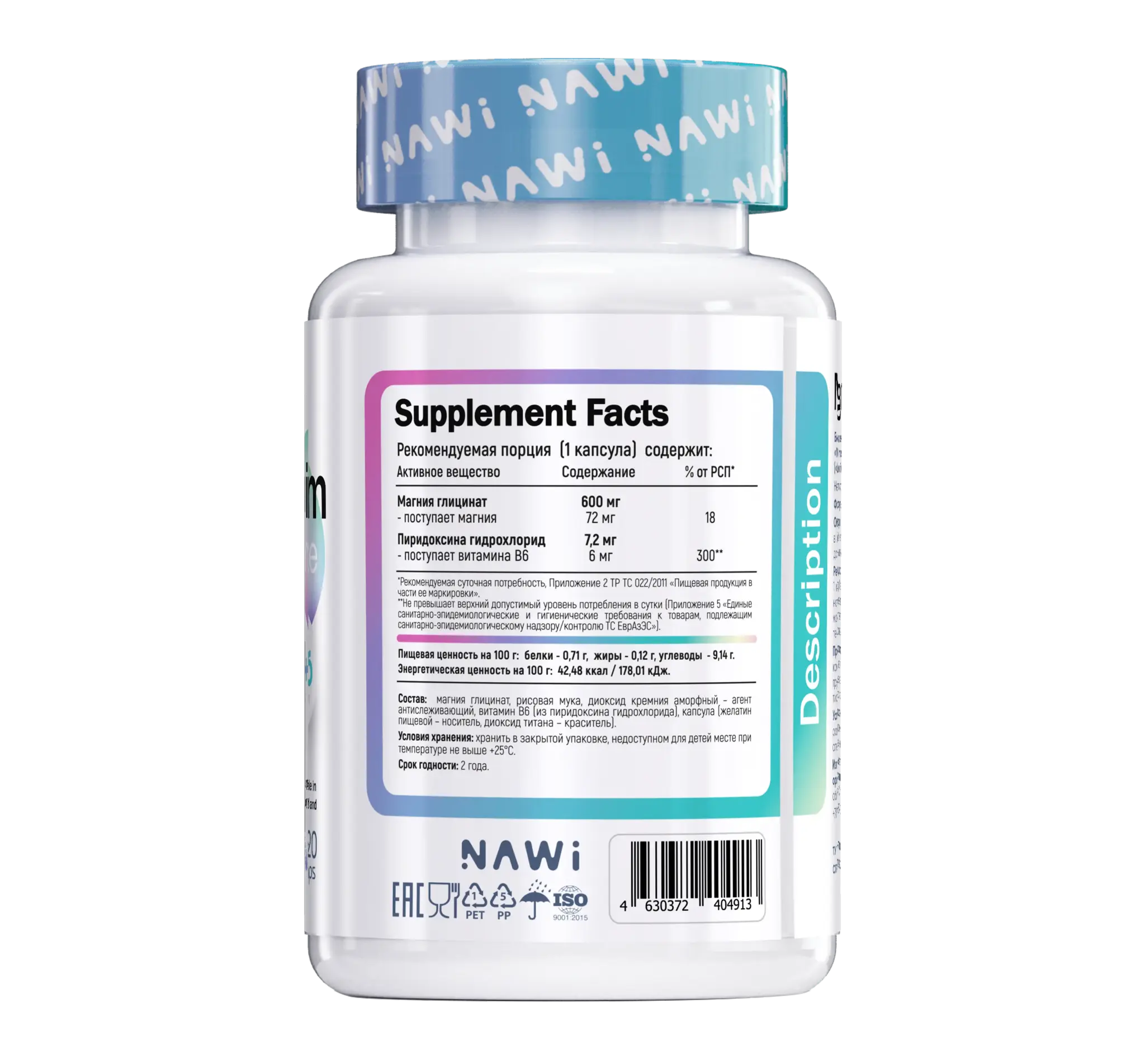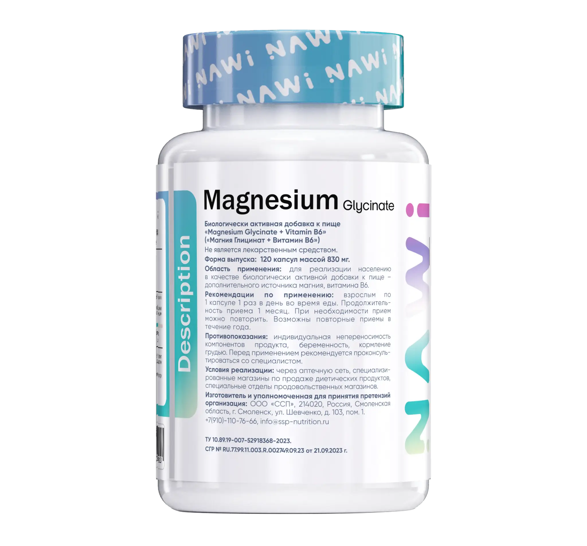 Витамины Nawi Magnesium Glycinate + B6 120 капсул