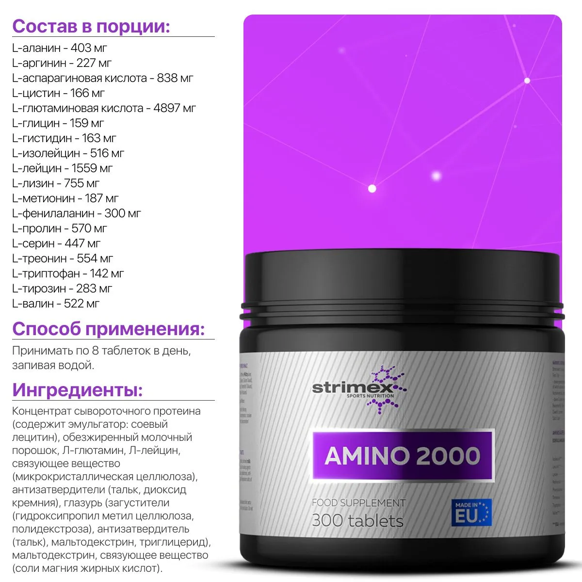 Аминокислота Strimex Amino 2000 300 таблеток